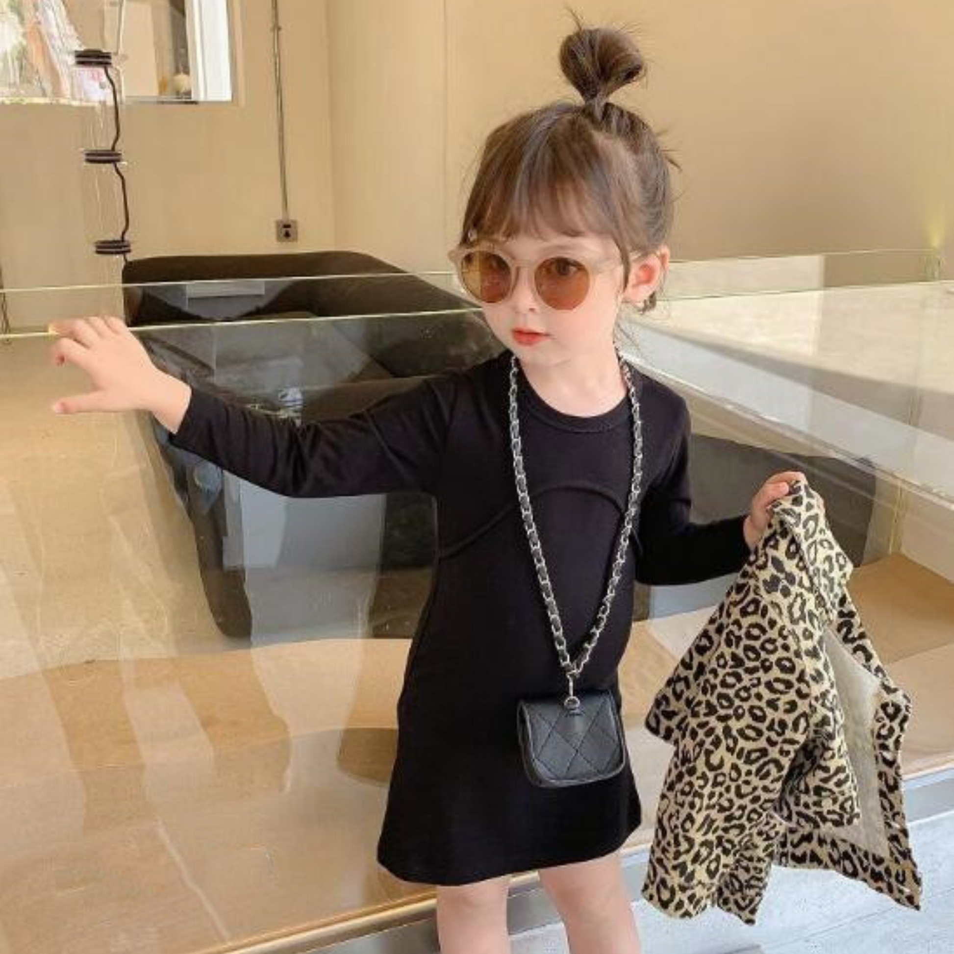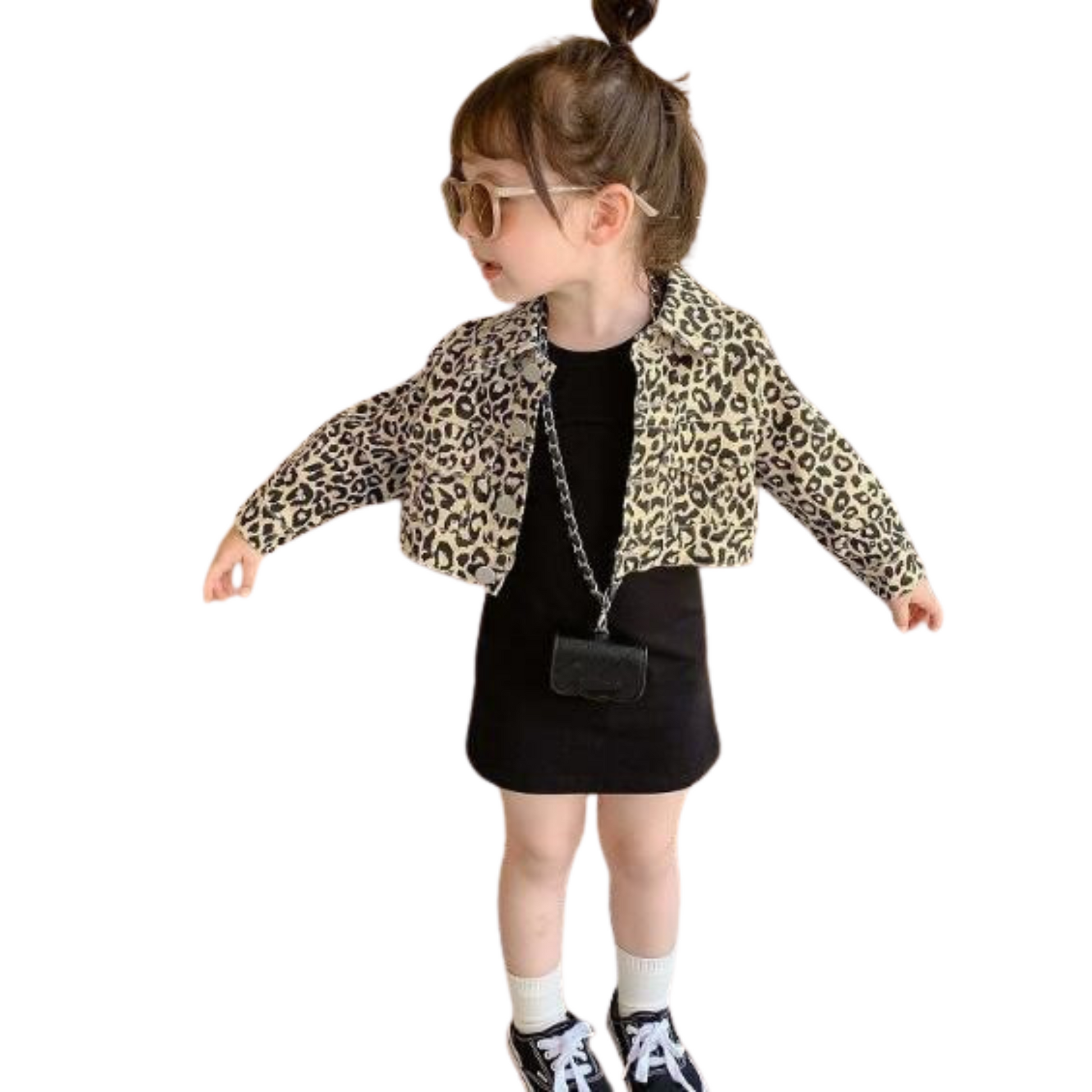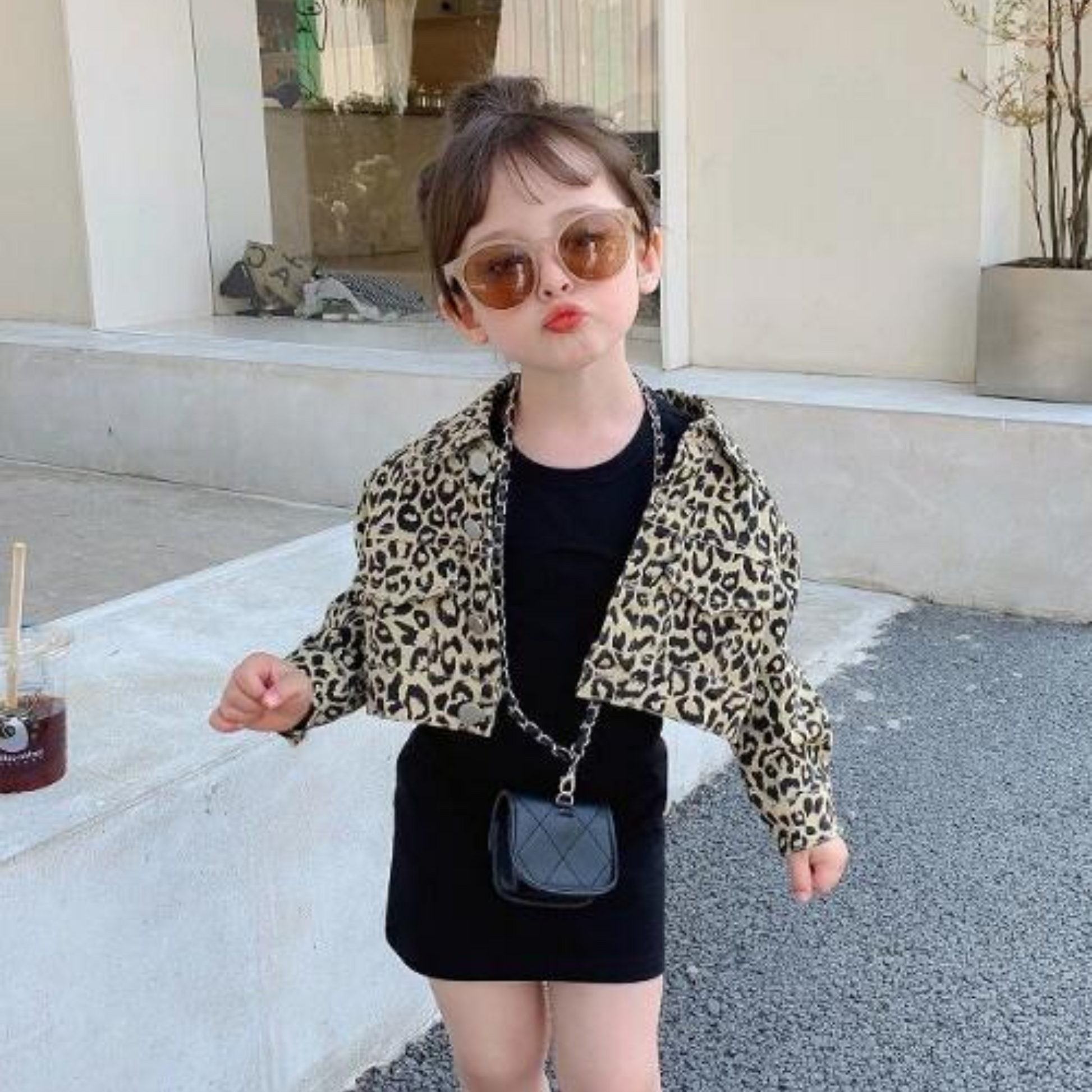 - トレンド感抜群のレオパード柄ジャケット×シンプルブラックワンピースの組み合わせ。