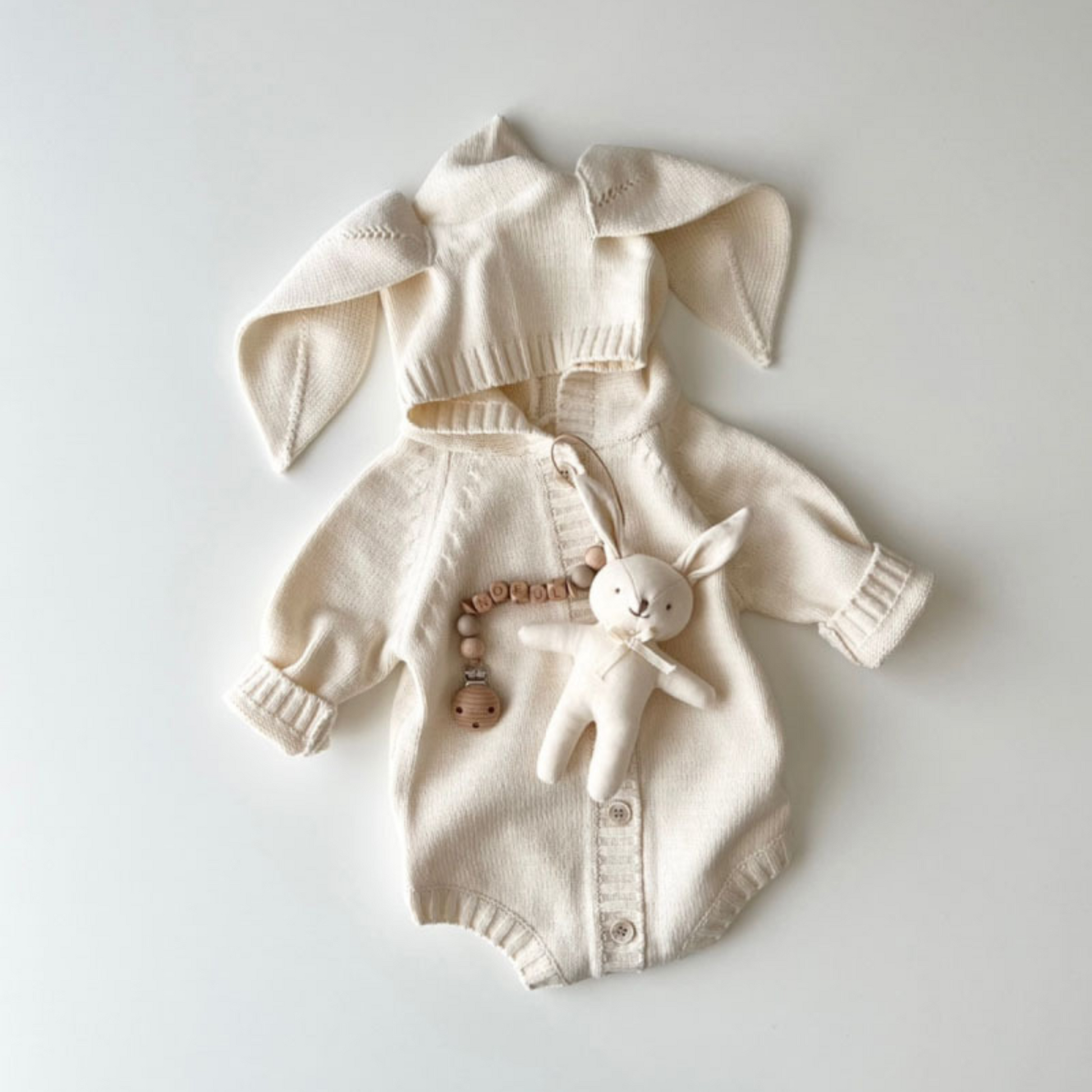\後ろ姿まで可愛すぎる♡うさ耳ニットロンパース/