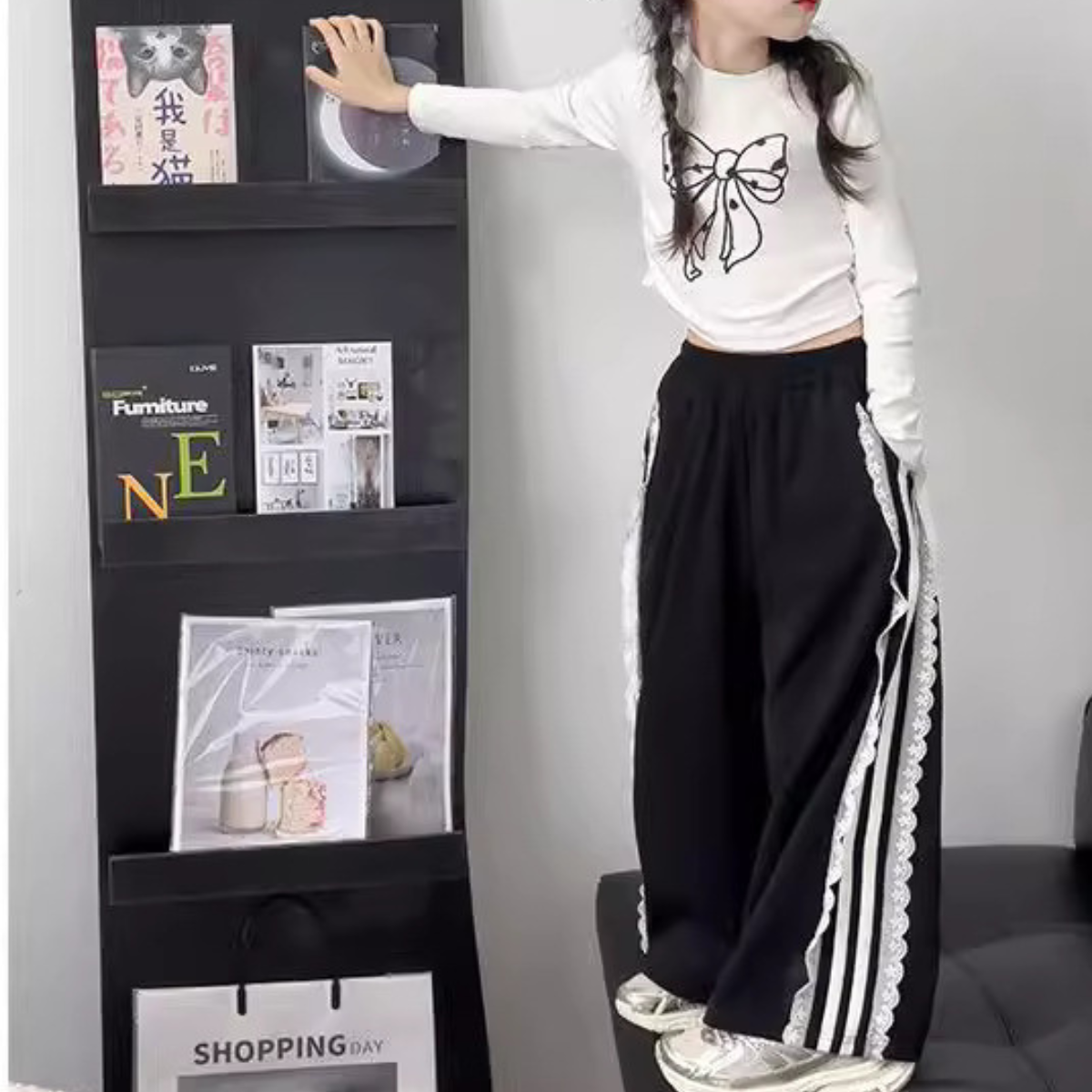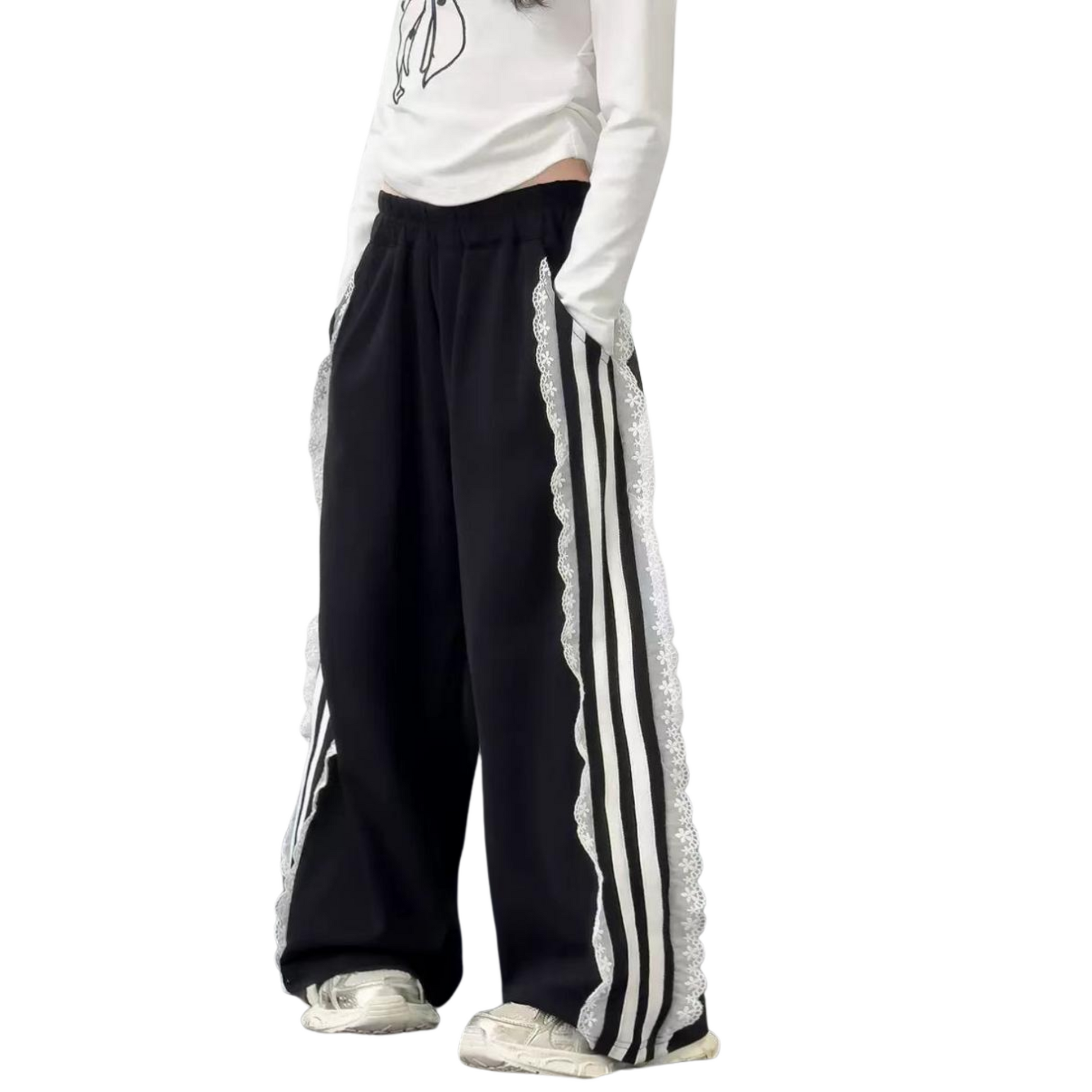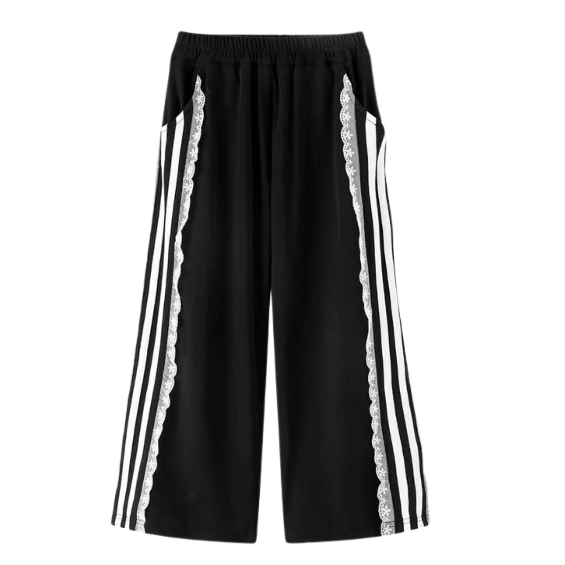 - サイドラインにレースをあしらった、ちょっぴり特別感のあるワイドパンツ✨