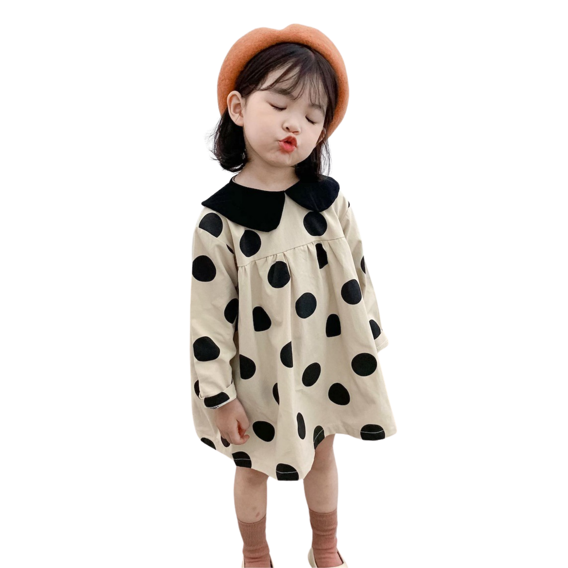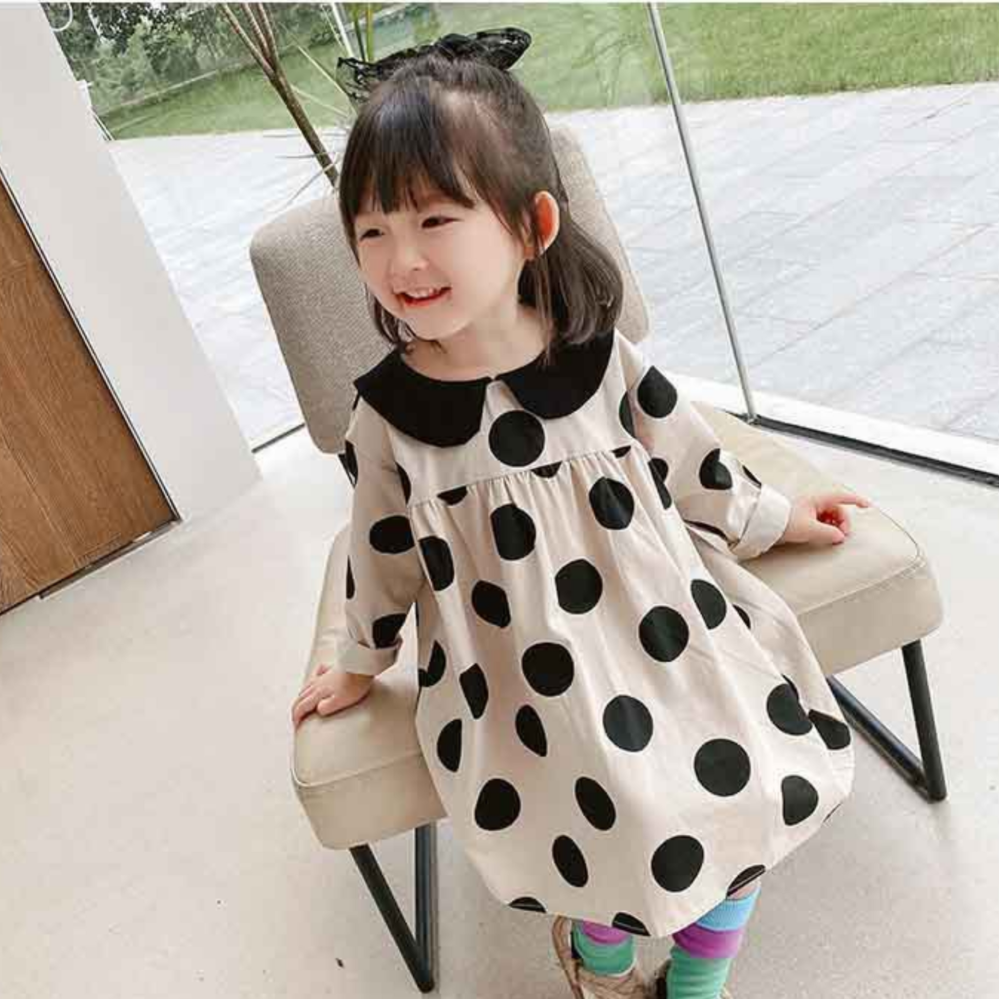 - 大きめドット柄 × 配色カラー襟で存在感たっぷり✨