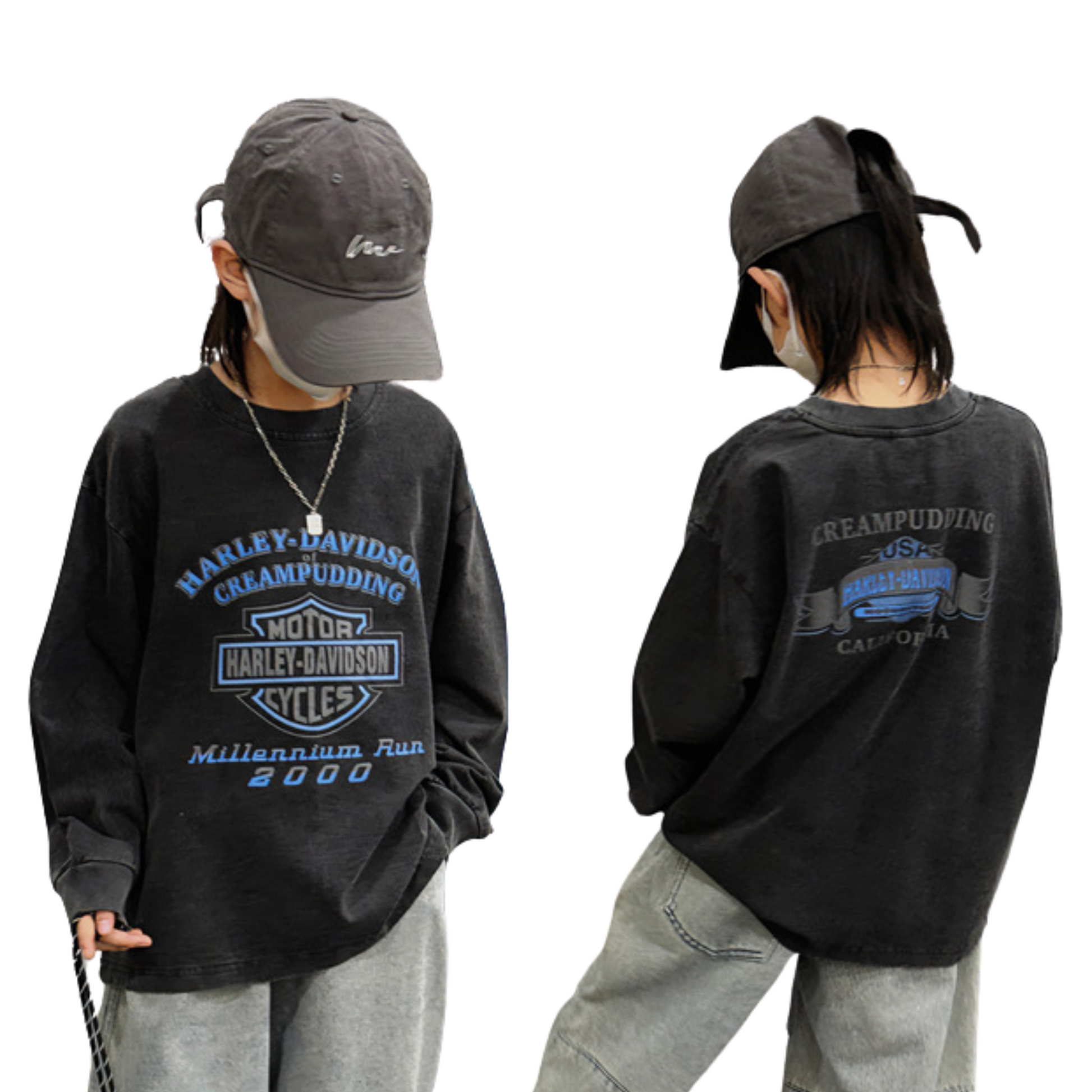 - フロントに施されたHARLEY風ロゴが印象的な、ストリート感漂うスウェットトップス。