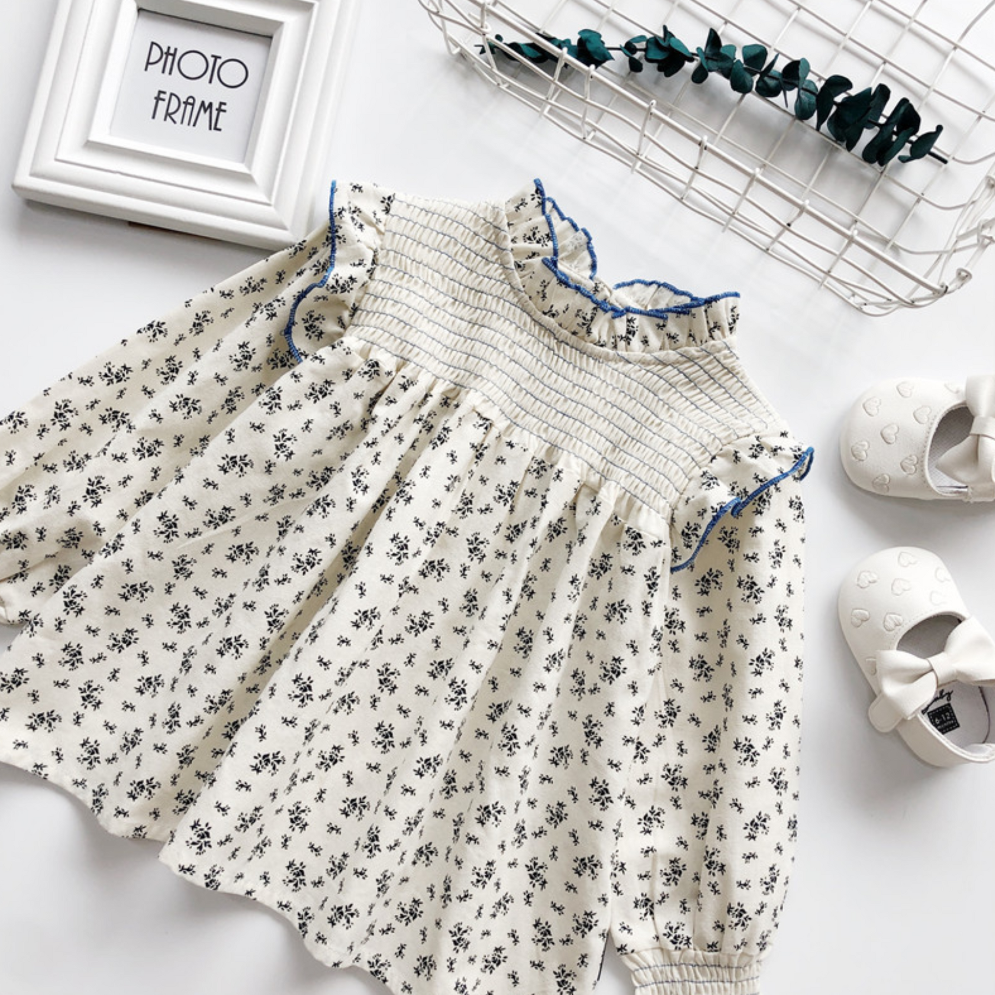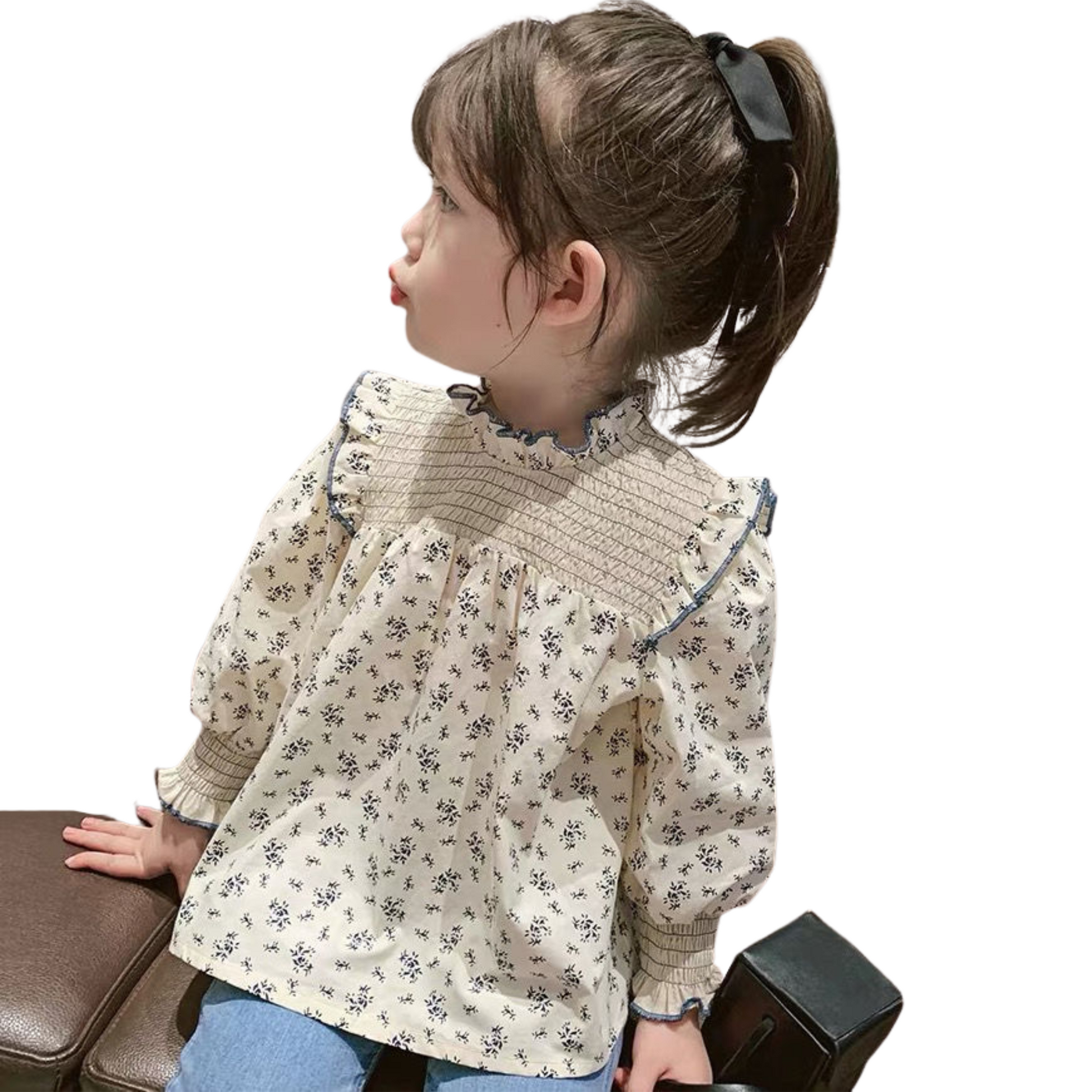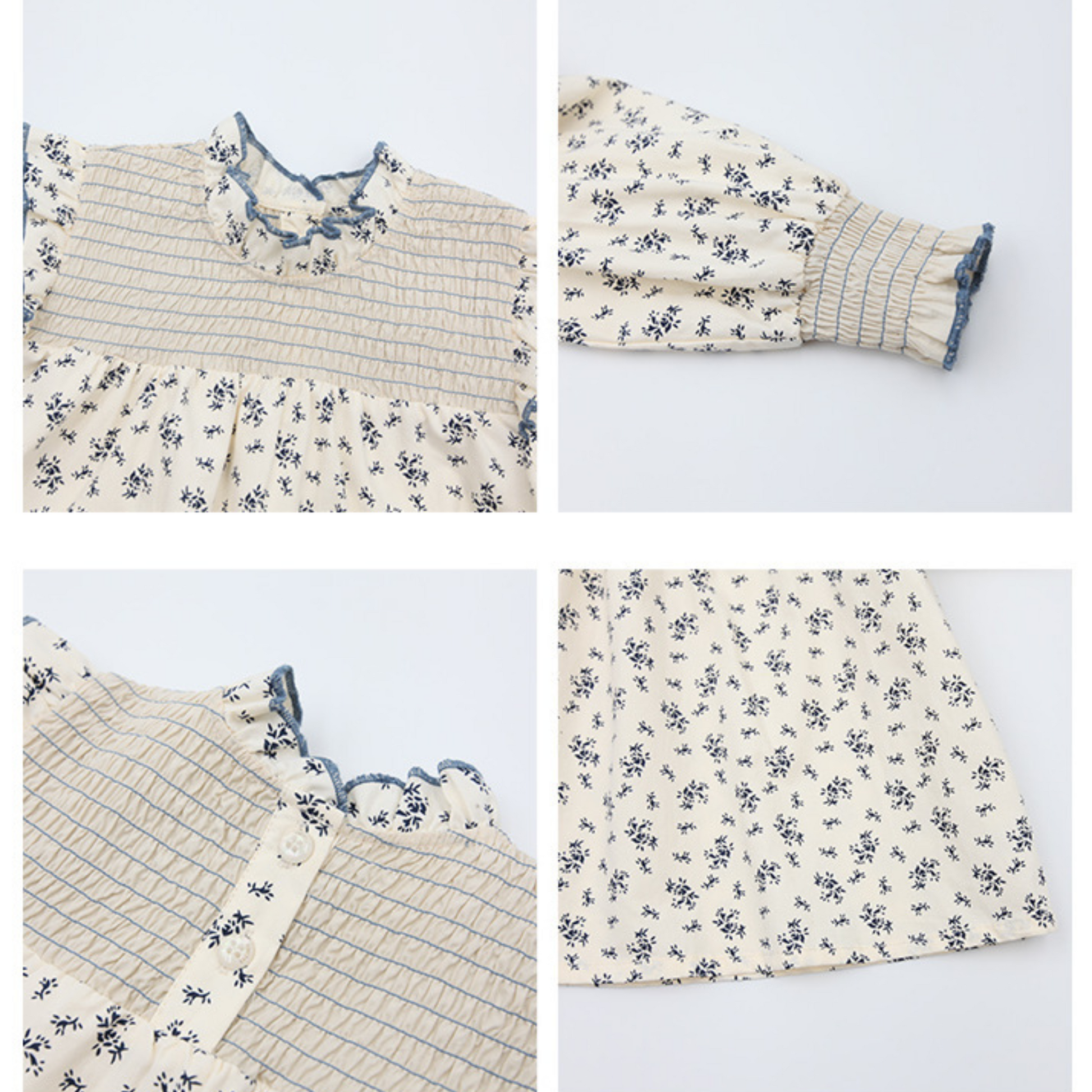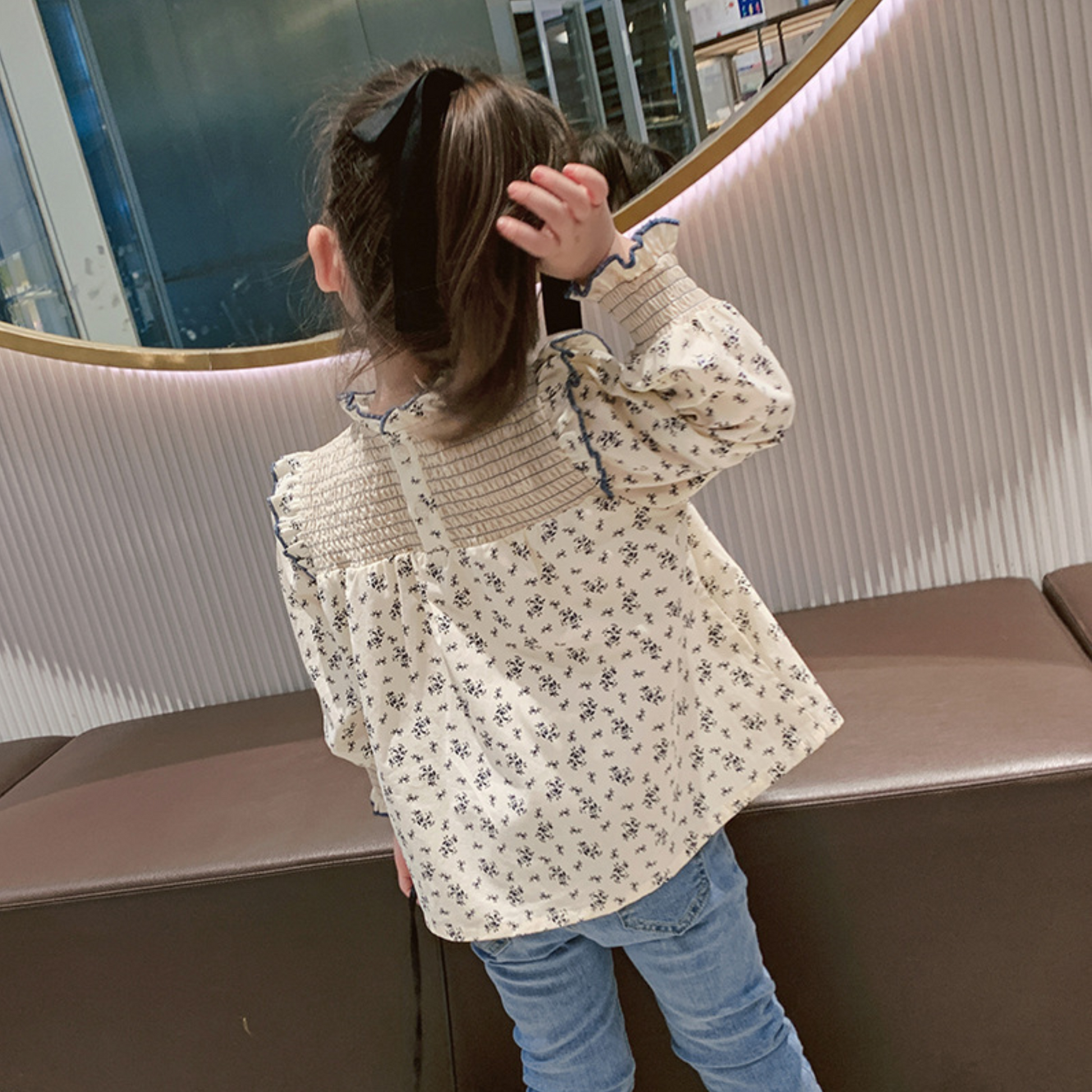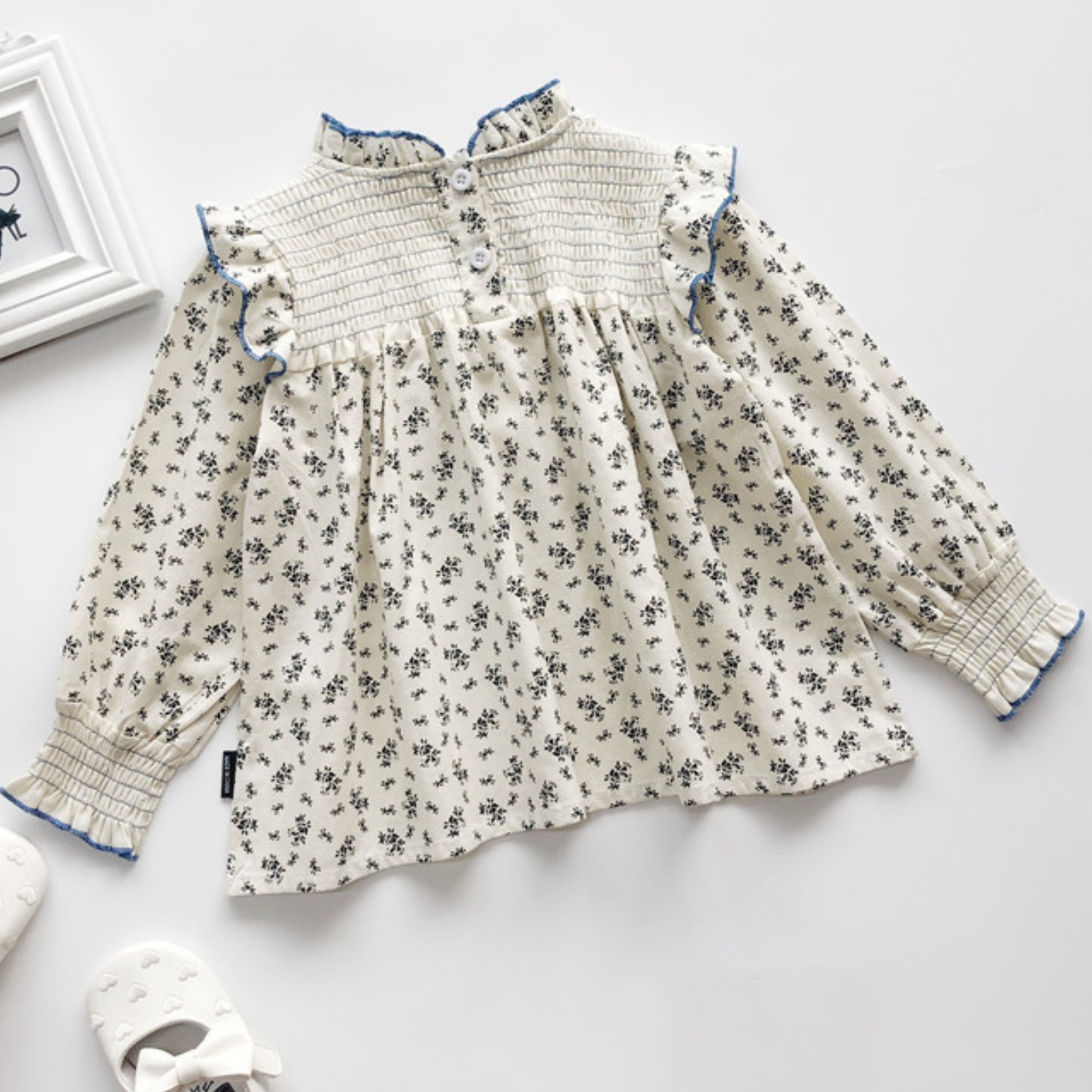 - 胸元のスモッキングデザインに、小花柄が映えるナチュラルかわいいブラウス。