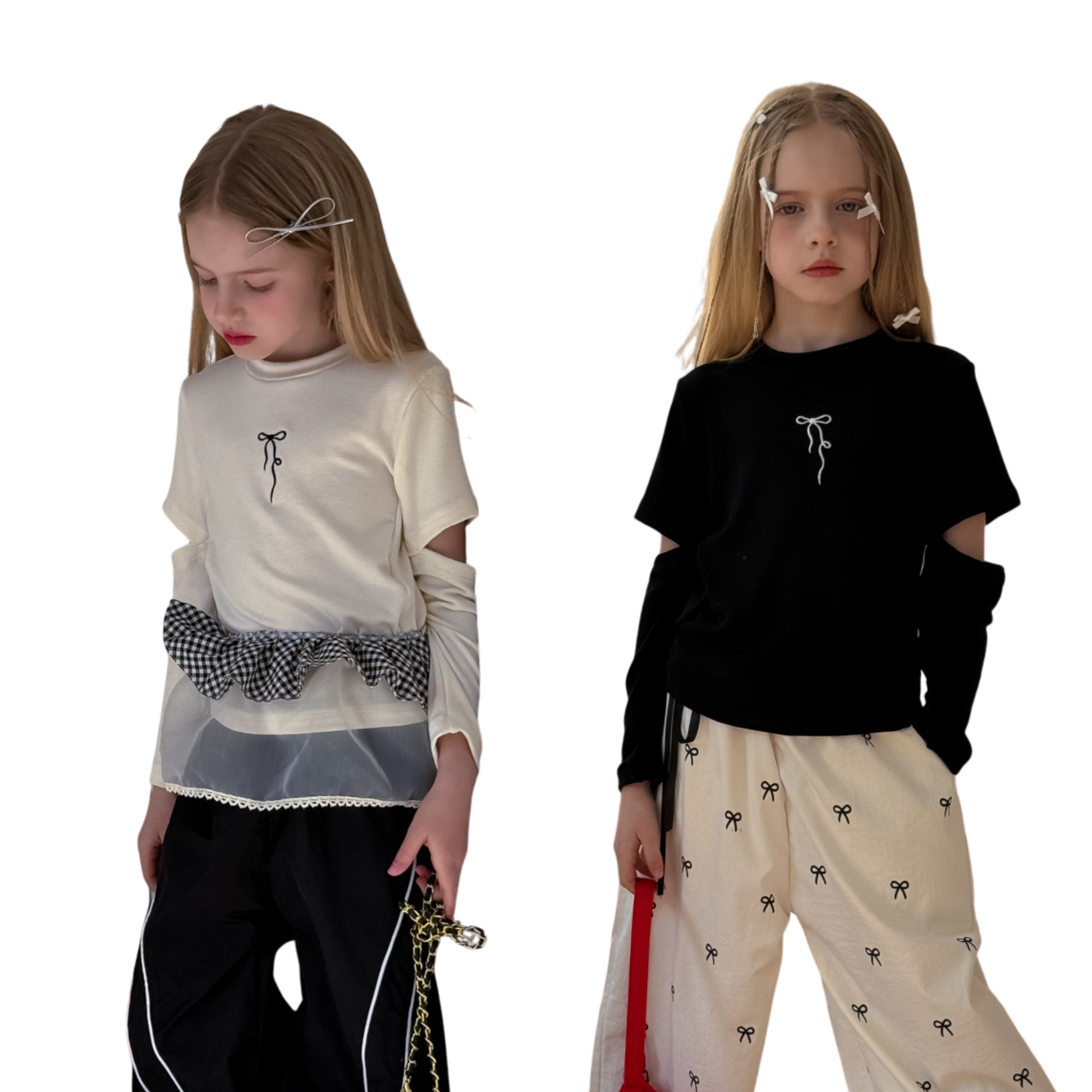 【メール便OK】スリットカットアウト袖リボンロンT wrw25sp081