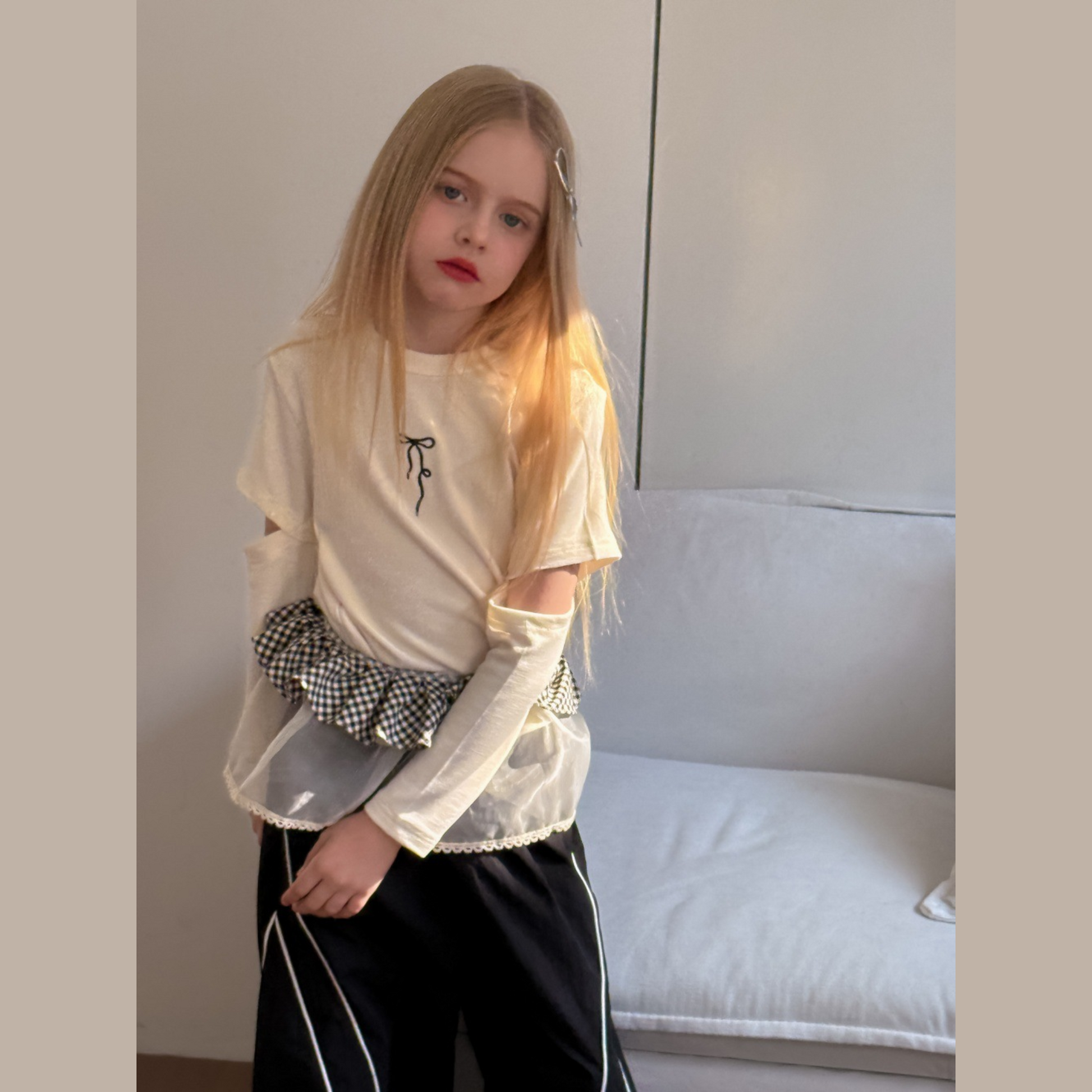 \ワンポイントリボンがかわいい💝レイヤード風トップス/