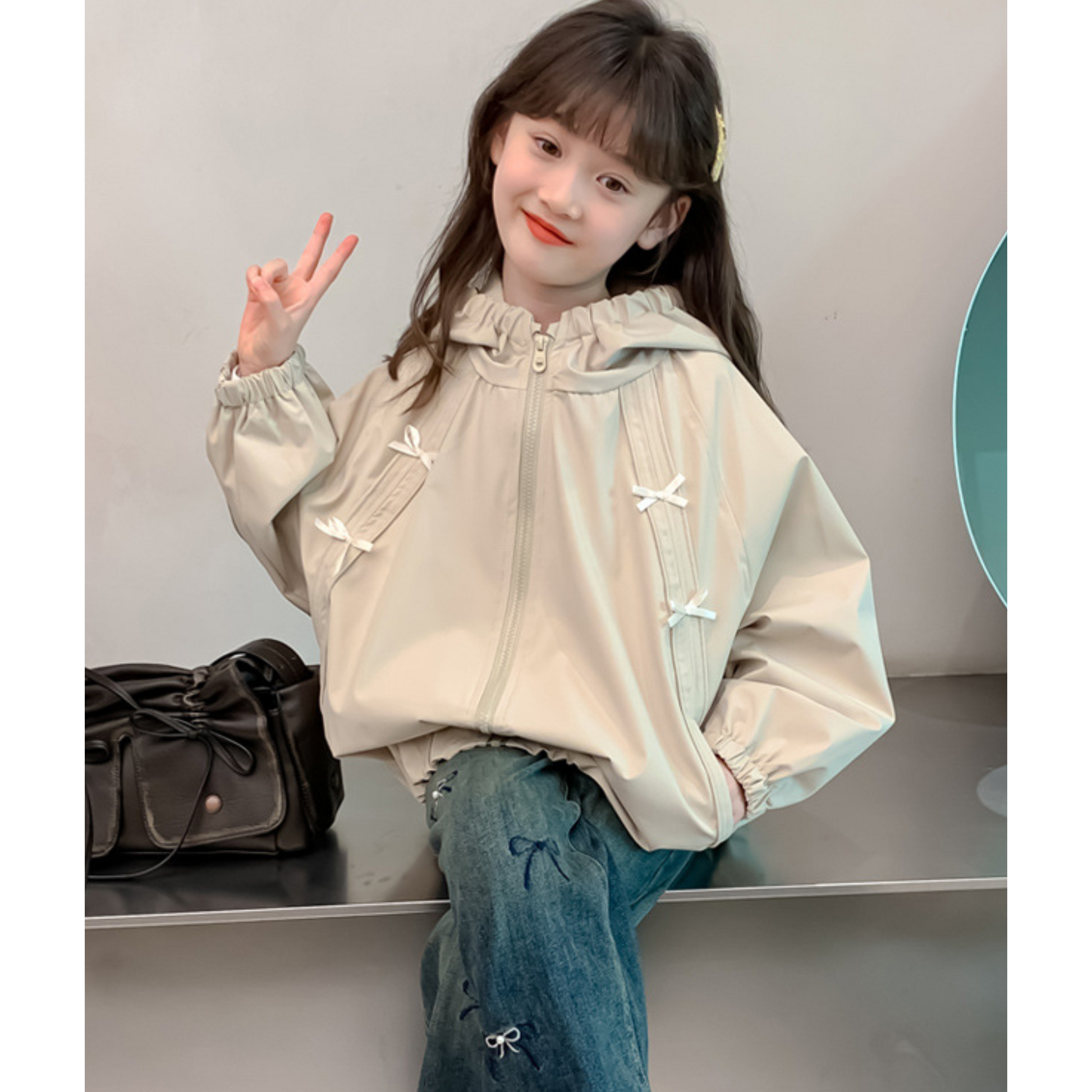 \秋のおでかけにぴったり♡リボン付きフーディジャケット/