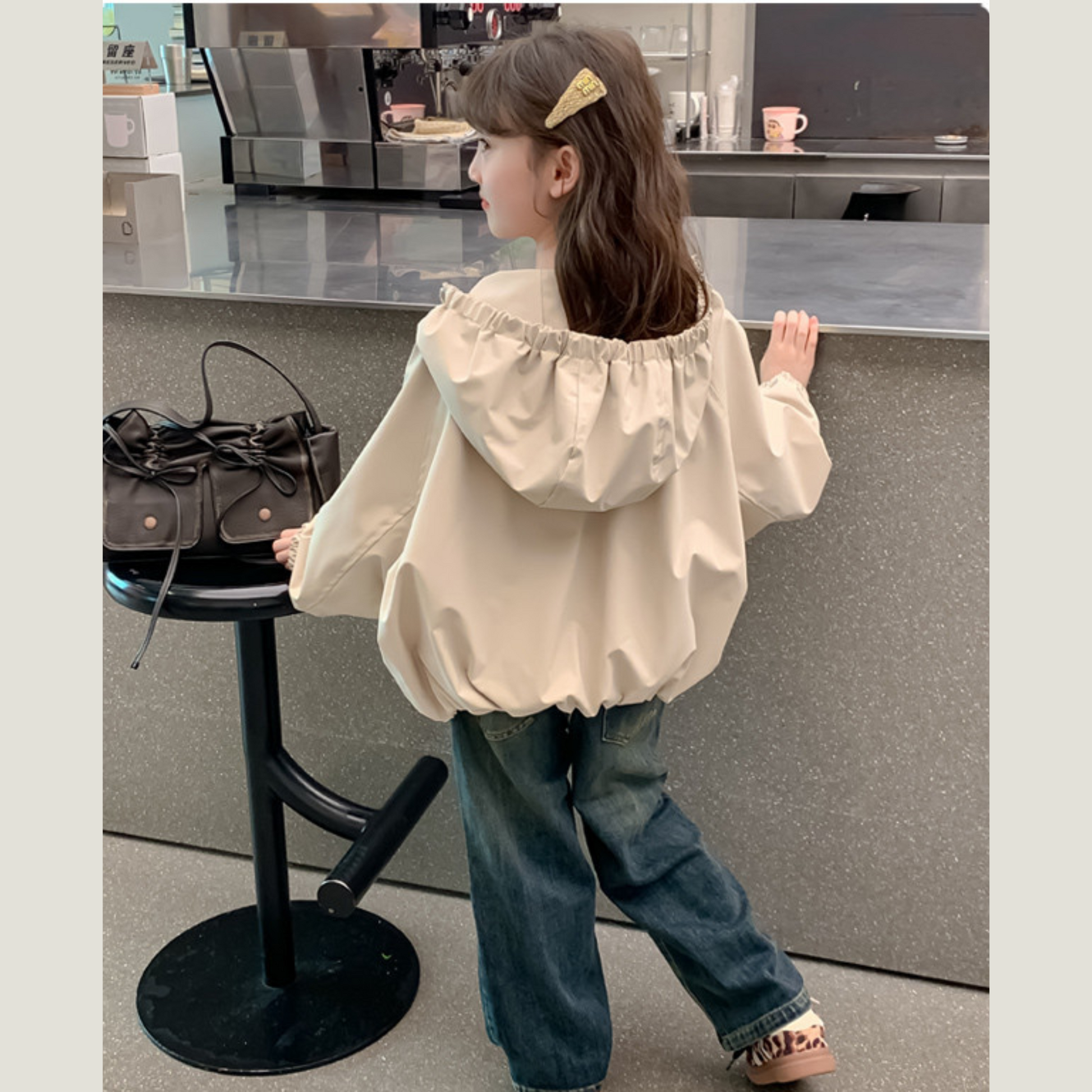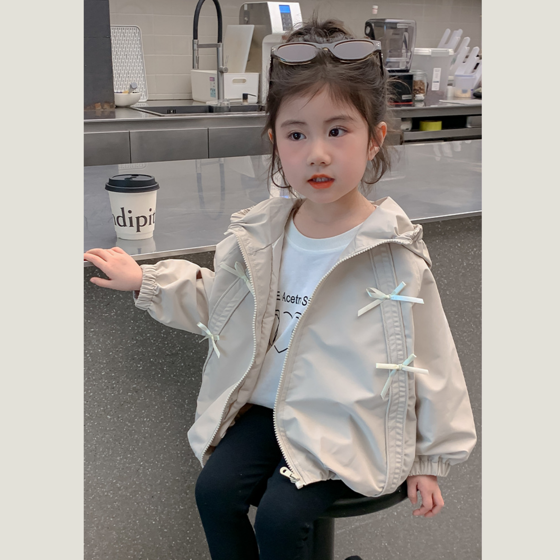 - さりげなくあしらわれたリボンがアクセントになった、ガーリーなフーディアウター✨